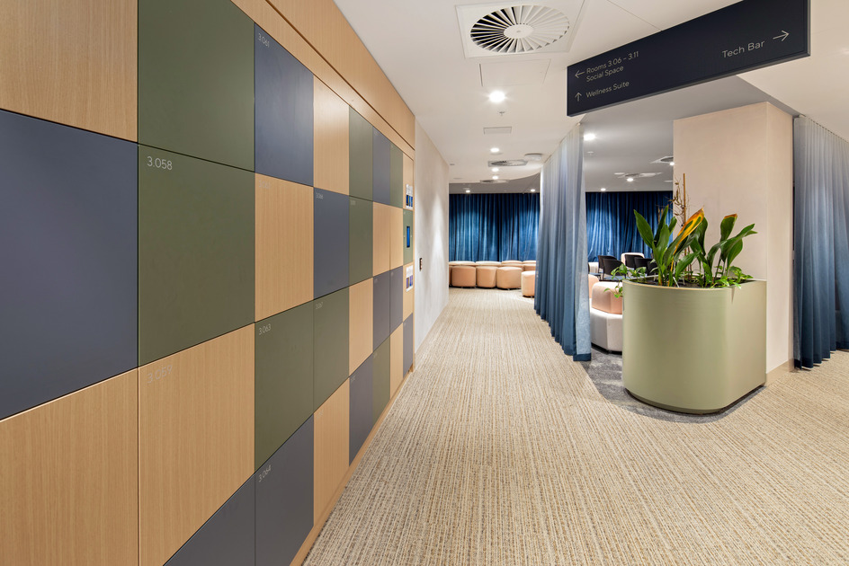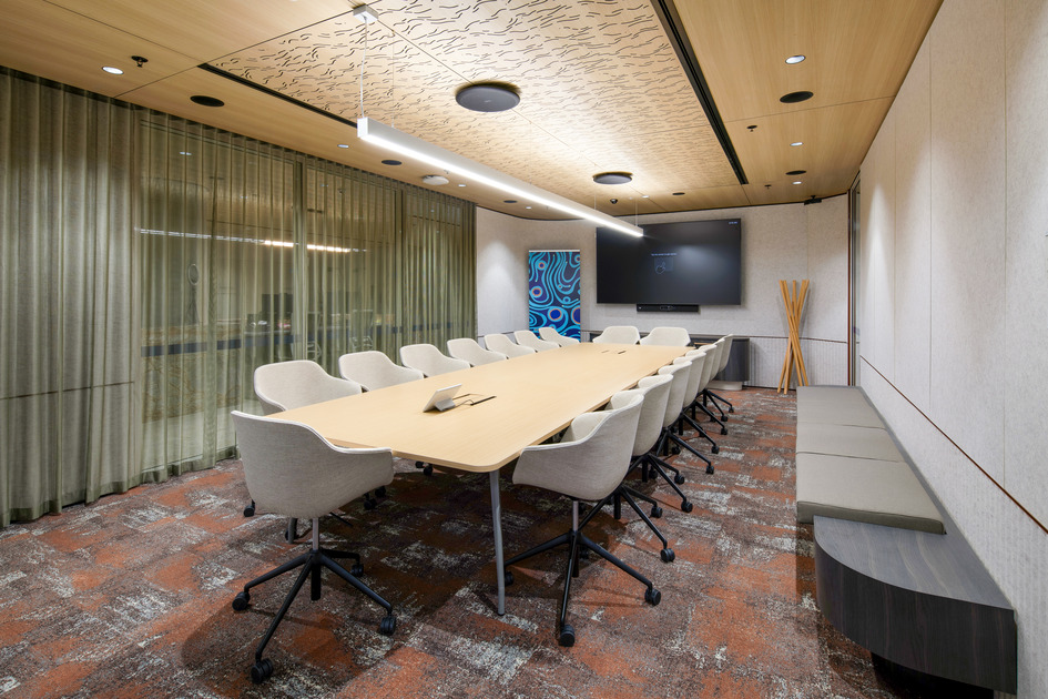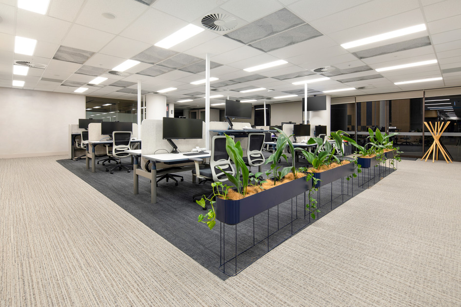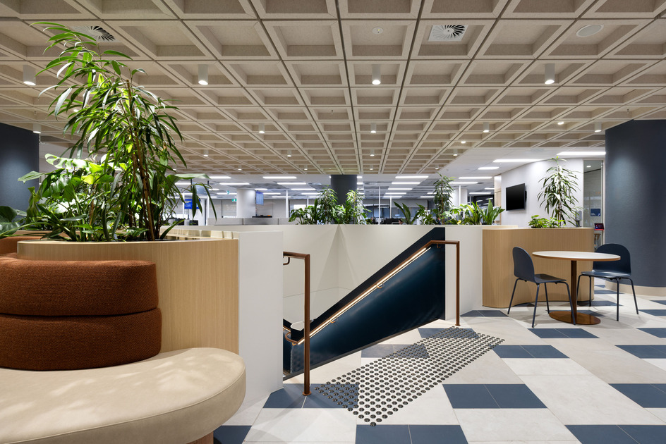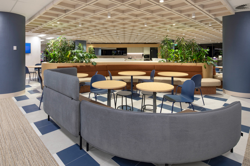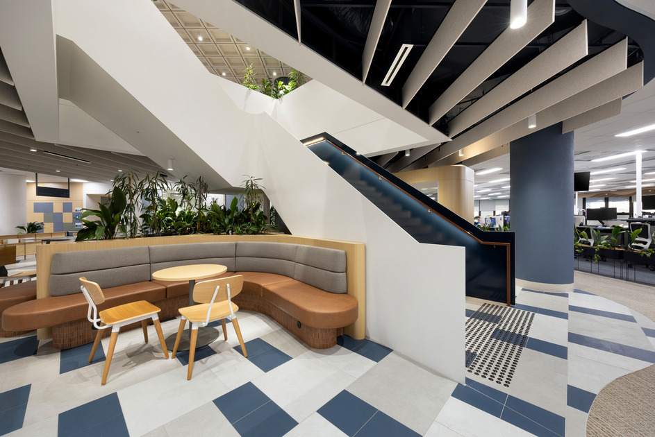 This two-level fitout created AGL’s new Adelaide call centre within a building that had recently undergone base build refurbishment. The project included workstations, meeting rooms, training spaces, wellness areas, kitchens, breakout zones, and an exterior terrace with landscaping. A new staircase was constructed between levels, and the scope also included feature ceilings, AV and security systems, switchboard upgrades, and prominent sky signage. Two comms rooms were handed over early to support AGL’s transition into the space.