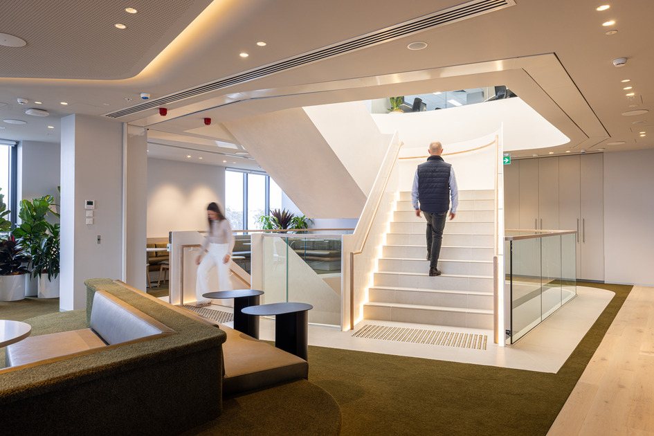 SHAPE was engaged to deliver the relocation of Allianz Australia’s Charlestown office into a new mixed-use development at 4 Charles Street, Charlestown. This project followed the successful completion of Allianz’s Adelaide and Brisbane offices, building on SHAPE’s experience with the client. Across three floors, Levels 4 to 6, the project delivered an open-plan workspace accommodating approximately 250 work points, an elegant slim profile venetian plaster finish interconnecting staircase, multifunction rooms with integrated AV systems, meeting rooms, kitchen breakout areas, and dedicated wellness and first-aid facilities. The design and construction focused on creating a flexible and collaborative environment that empowers employees with modern ways of working, integrated digital tools, and spaces that support health and wellbeing. By combining open-plan zones with multifunction and social spaces, the fitout fosters interaction, collaboration, and movement across the floors while maintaining comfort and operational efficiency. Delivered on schedule, the project demonstrates SHAPE’s capability to manage complex relocations and deliver workspaces that prioritise occupant experience, technology integration, and wellness-focused design.