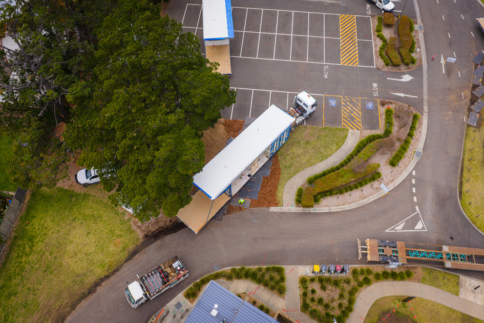 While on-site works commenced, the Modular by SHAPE team constructed 17-metre-long modules with an integrated deck off-site before carefully transporting and installing at the reserve. This approach minimised disruption to the active sporting precinct, allowing the clubs and community to continue using the reserve throughout the build.
