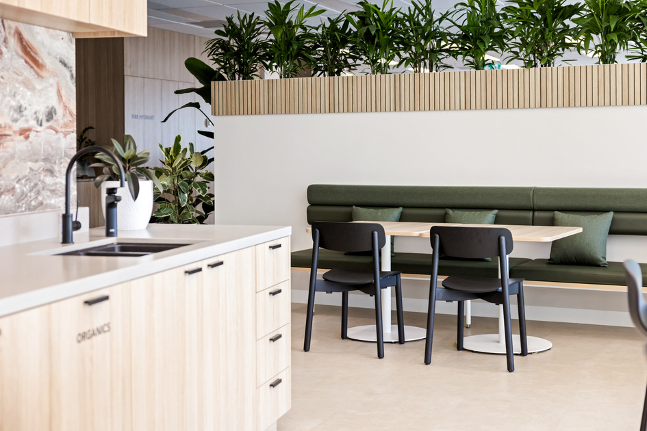 Sustainability was a driving force from concept to completion. More than 200 items, including chairs, desks, tables, and appliances were reused, alongside 213m² of reclaimed building products integrated seamlessly into the design. A further 85 percent of construction waste was also diverted from landfill through tracking and recycling. These initiatives reduced the environmental impact and contributed to a strong Green Star rating. Additional measures such as daylight harvesting, timed lighting, and CO₂ sensors further enhanced energy efficiency.