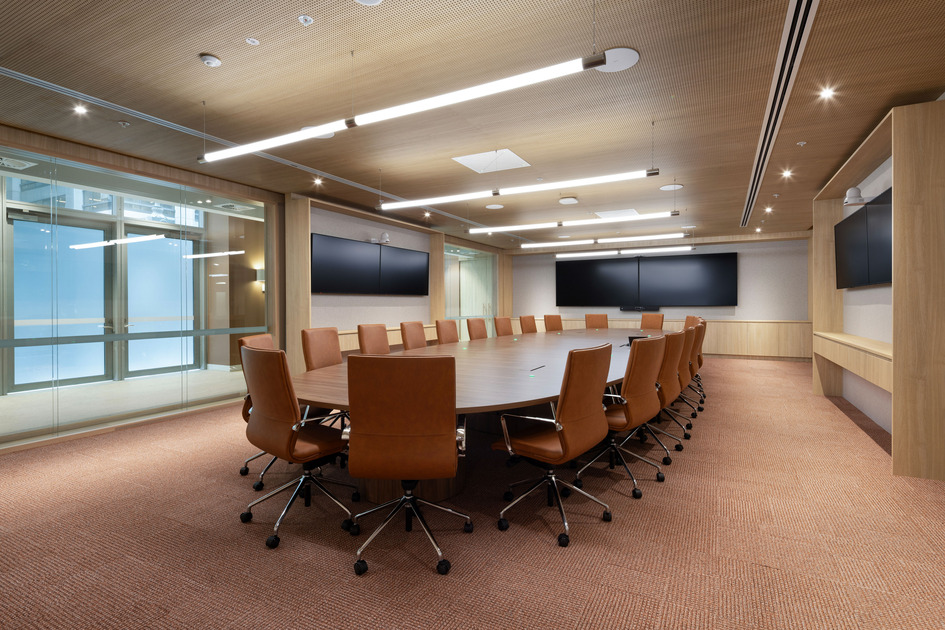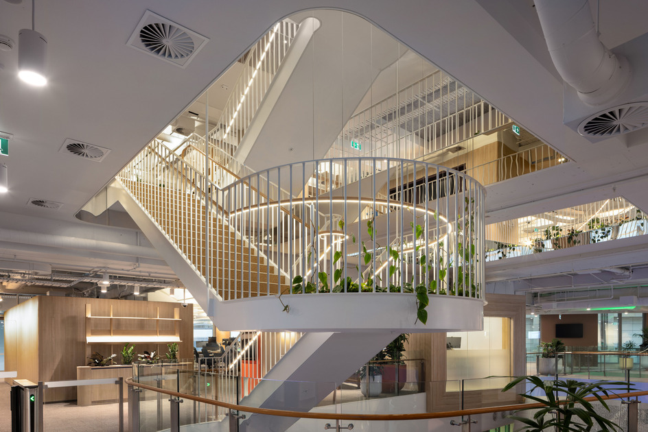 The transformation involved an in-situ refurbishment and full fitout across five levels, featuring an internal staircase linking levels 3 to 5 to improve vertical connectivity. Level 4 serves as the social and collaborative hub of the workplace, with extensive internal and external landscaping and a large town hall space for company-wide gatherings. Level 5 accommodates the CEO and Executive Leadership Team, providing premium meeting and workspace areas, while Level 3 houses the main boardroom. Critical infrastructure teams and key business units are located on Level 7, supporting seamless integration of operational and leadership functions within the building.
